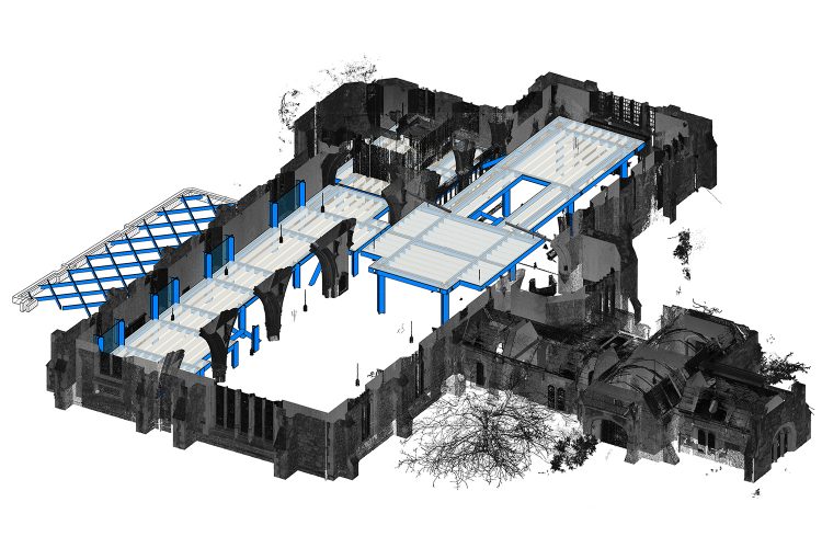 The project delivers a conversion of a 1849 Grade 2* listed former Chapel into luxury accommodation. Located within the Old Brompton Hospital site, the site is constrained on all sides by residential buildings, allowing no vehicle access. The structural philosophy was fundamental to gaining Planning and English Heritage approval. Steel screw-piles supporting a hot-rolled steel frame structure were proposed to have negligible effect on the existing structure, take no support from the existing structure, minimise disruption to the existing building fabric and to design all proposed structural elements to be fully demountable/reversible. Exposed steel sections were designed in cruciform shape using equal angles to ease installation and add to the architecture. Beam sections were formed similarly with double-up PFC sections, with standardised bolted plate connections.