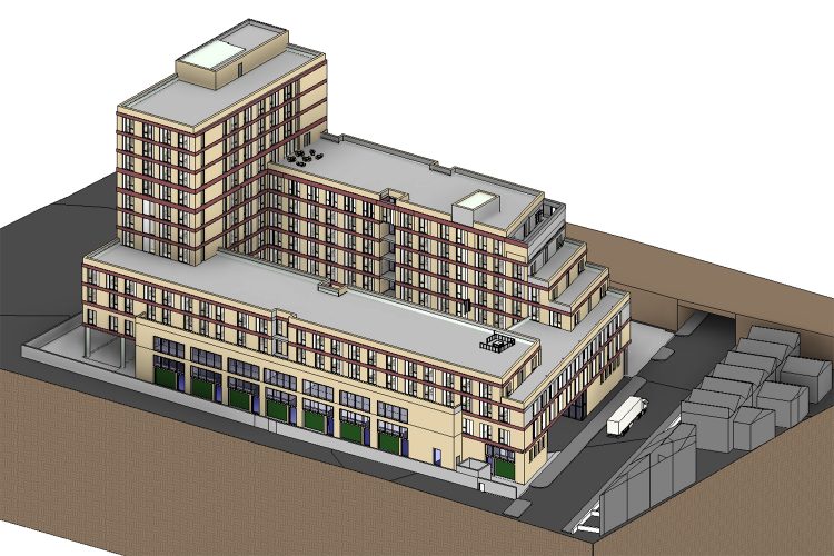 The new development will replace a series of 1 to 2 storey industrial buildings which currently occupy the site, which is bounded to the east by network rail arches.